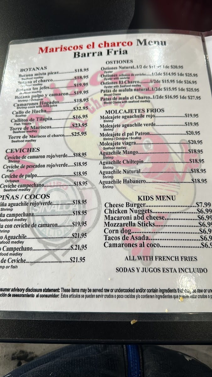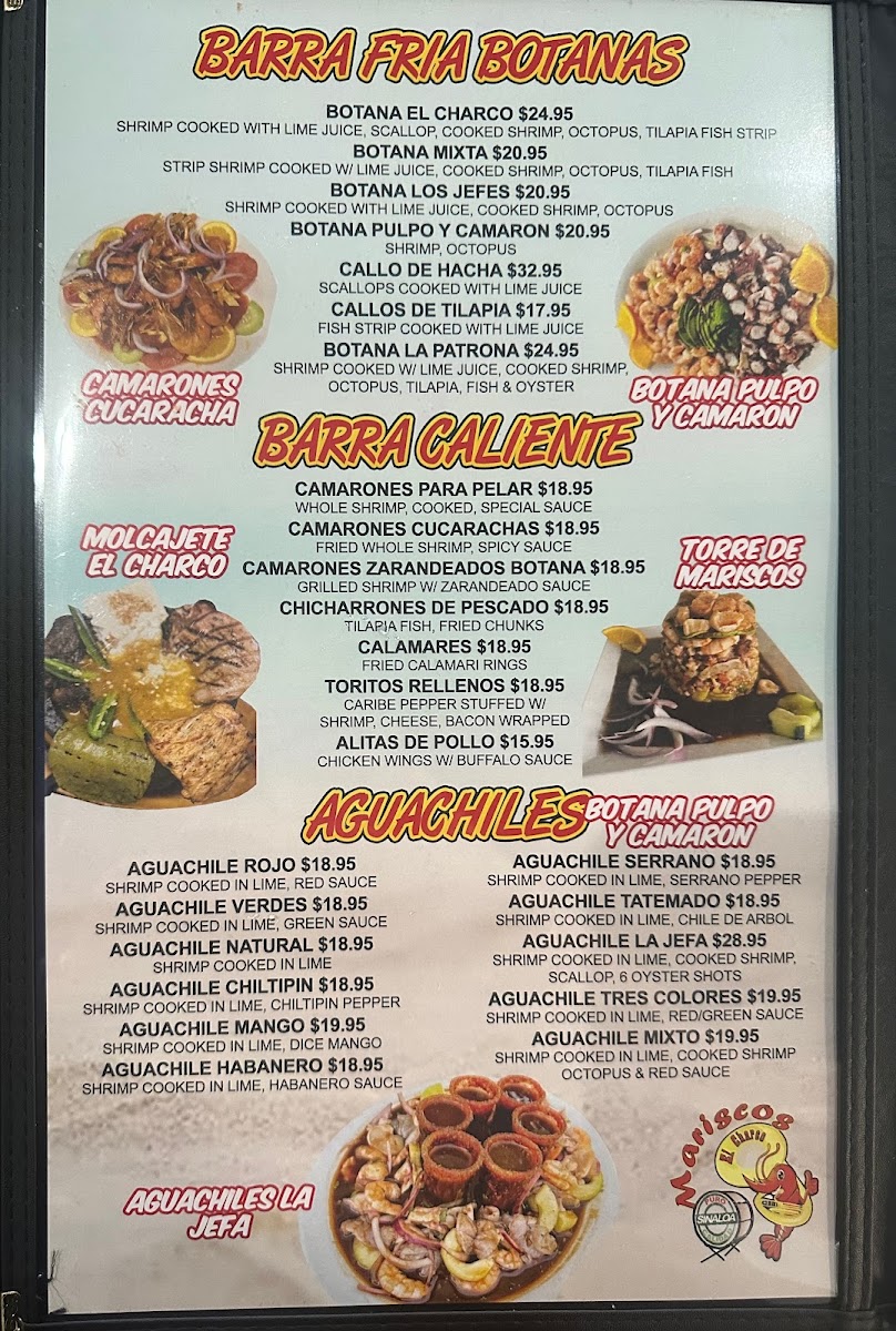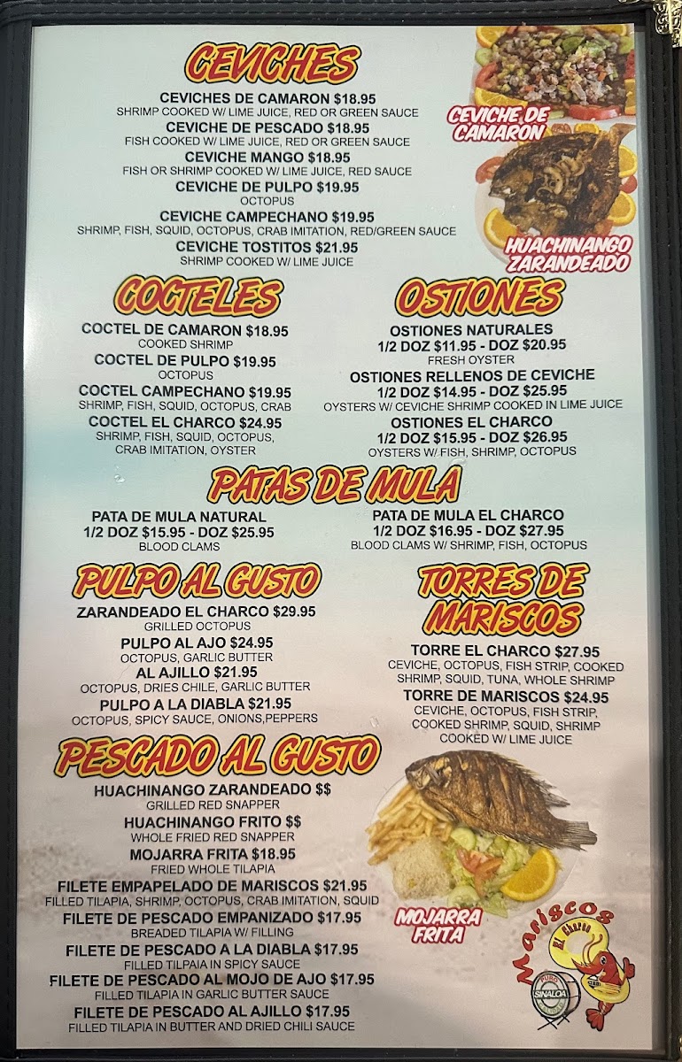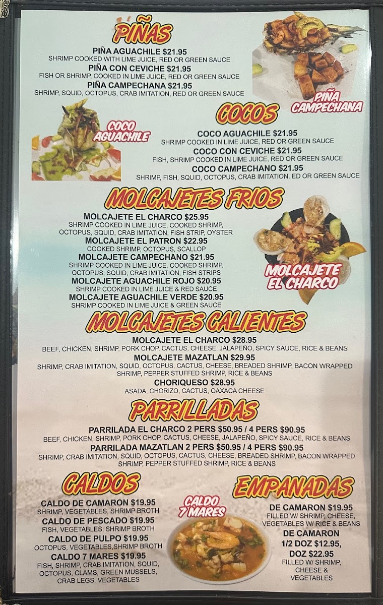 The menu at Mariscos El Charco offers a vibrant selection of dishes that reflect the restaurant's focus on fresh, flavorful seafood and Mexican cuisine. One of the standout drinks is the Micheladas, a refreshing choice that pairs perfectly with any meal. For a tangy and zesty appetizer, the Tostada de Aguachile is a must-try, featuring shrimp marinated in lime and chili. Sushi lovers will enjoy their diverse selection of rolls, adding a Japanese twist to the menu.